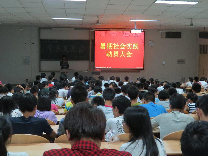 为提高大学生社会实践能力,促进其综合素质的发展,2014年5月23日,机电工程学院于教1-102召开2014年暑假社会实践动员大会。本次动员大会以视频展示的形式,给大家讲述往届学生的实践活动,12级300余名同学参加此次大会,动员效果良好。