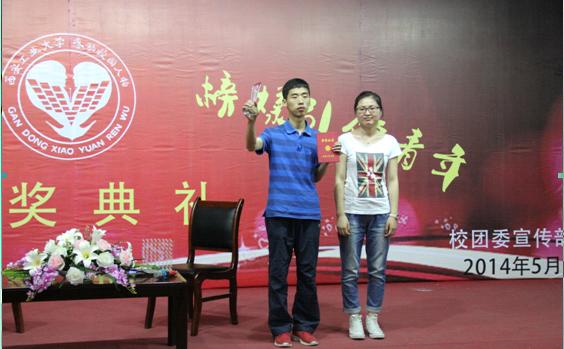 5月29日晚,西安工业大学第八届感动校园人物颁奖典礼在未央校区图书馆报告厅隆重举行。光电学院10级吴帅君同学被评为西安工业大学第八届“赛场精英”感动校园人物。