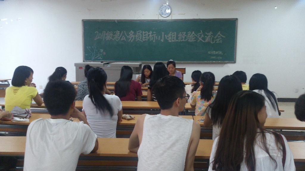 6月9日晚7点,经管学院在教五楼209举办了2011级考公务员目标小组经验交流会。这次交流会邀请到了2010级已成功考取公务员的张宁和王雪梅两名学姐为2011级考公务员目标小组成员讲解。