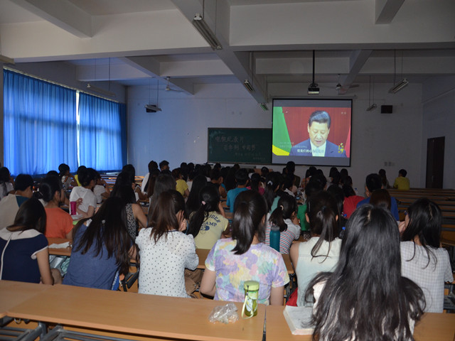 仪式开始,曾灵秀老师致辞,她给同学们介绍了电视纪录片“百年潮·中国梦”的时代背景和主要主要内容,该片共分五集,分别为“百年追梦”、“中国道路”、“中国精神”、“中国力量”、“筑梦天下”,从多角度,多层面全面阐释 “中国梦”的历史成因和时代内涵,是全面、生动解读“中国梦”的精品力作。希望同学们从此次集体思想学习中深刻领会,把握中国复兴之路的脉搏,为中国梦的实现贡献青春的力量。