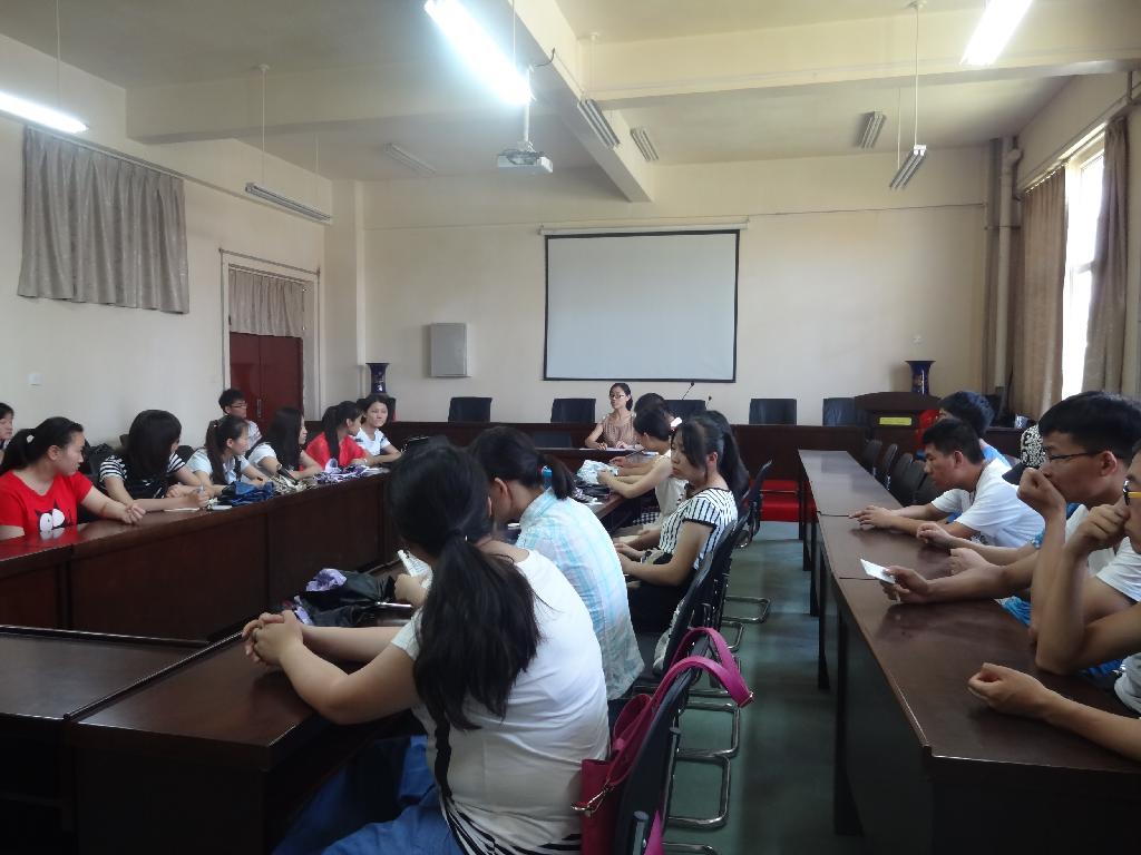 下午3:30,培训会正式开始。首先,杨老提到了本次组团实践的前期准备问题。主要内容有细化和修订策划书,队员签订个人责任书,确定最终实践时间等。杨老师特别强调了队员任务分工,要求大家做好工作分配,以免实践时出现分歧,影响合作。其次,杨老师讲到了活动的具体开展。要求严格遵守“一天一队一汇报”的机制,把安全放在首位,提醒大家“安全重于泰山”,尤其进入七月,天气炎热,防暑工作要做到位。接着,杨老师强调了实践活动的文明公约。她提出大学生在实践过程当中应该谨记自己的身份,遵守社会公德,踏实做事,态度诚恳,以积极的心态面对此次实践。同时,老师给大家介绍了实践报告的撰写方法,说明注意事项。就宣传报道、摄影摄像等问题给大家进行细致的讲解,确保所有参与实践的队员熟知实践的过程和细节。