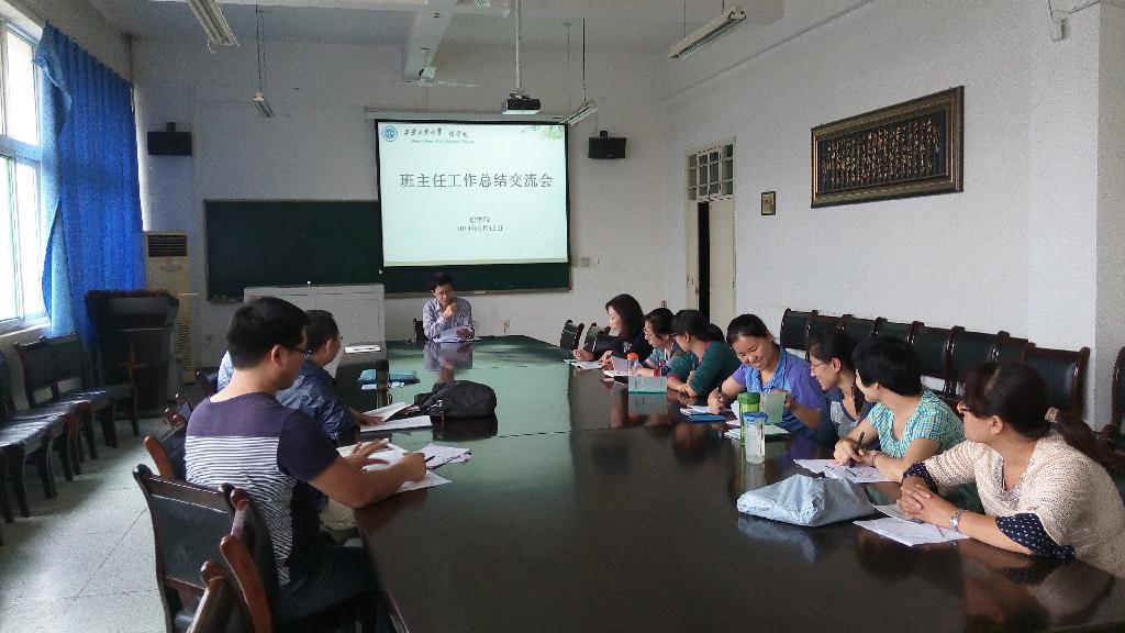 9月12日下午15:30,理学院在教6-412召开2013-2014学年班主任工作总结交流会,会议由辅导员靳永军主持,学院党总支书记杨力教授、辅导员王娟和2013-2014学年、2014-2015学年全体班主任参加会议。