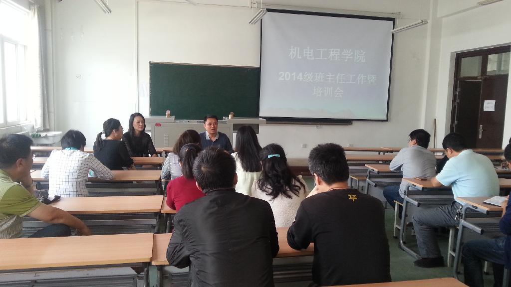 2014年9月26日下午13:40,机电工程学院在工2-504会议室召开了班主任工作交流及培训会议。学院党委书记赵玉厚,学院党委副书记闫莉,2014级辅导员刘璐、黄彦军及全体班主任参加了会议。