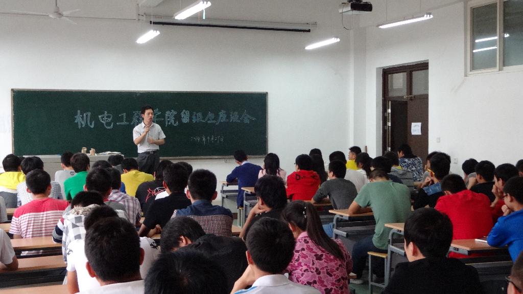 2014年9月29日下午17:10分,机电工程学院于工2—504教室召开留降级学生座谈会。机电工程学院辅导员年级组长张晖老师,辅导员薛鹏、黄彦军、宋荣新老师、我院09级学生李成龙以及全体留降级学生参加了会议。