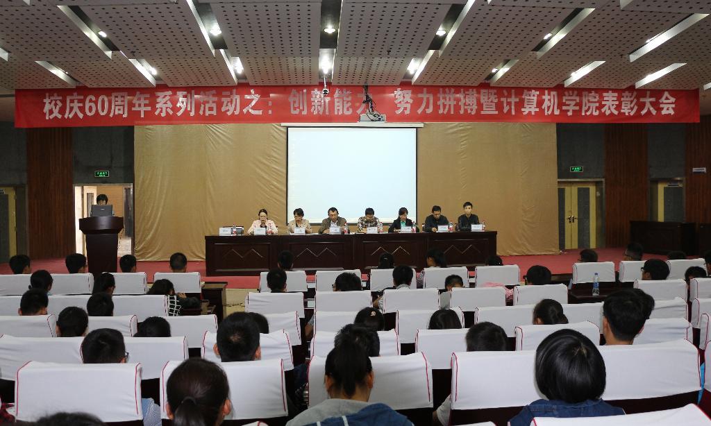 为喜迎校庆60周年,9月9日下午,我校计算机学院在图书馆报告厅隆重举行2013-2014年国家级竞赛获奖学生表彰大会。我校校团委、教务处、学生处和计算机学院领导、教师代表和获奖学生及学生代表300余人参加了大会。会议由计算机学院党委副书记李颖主持。