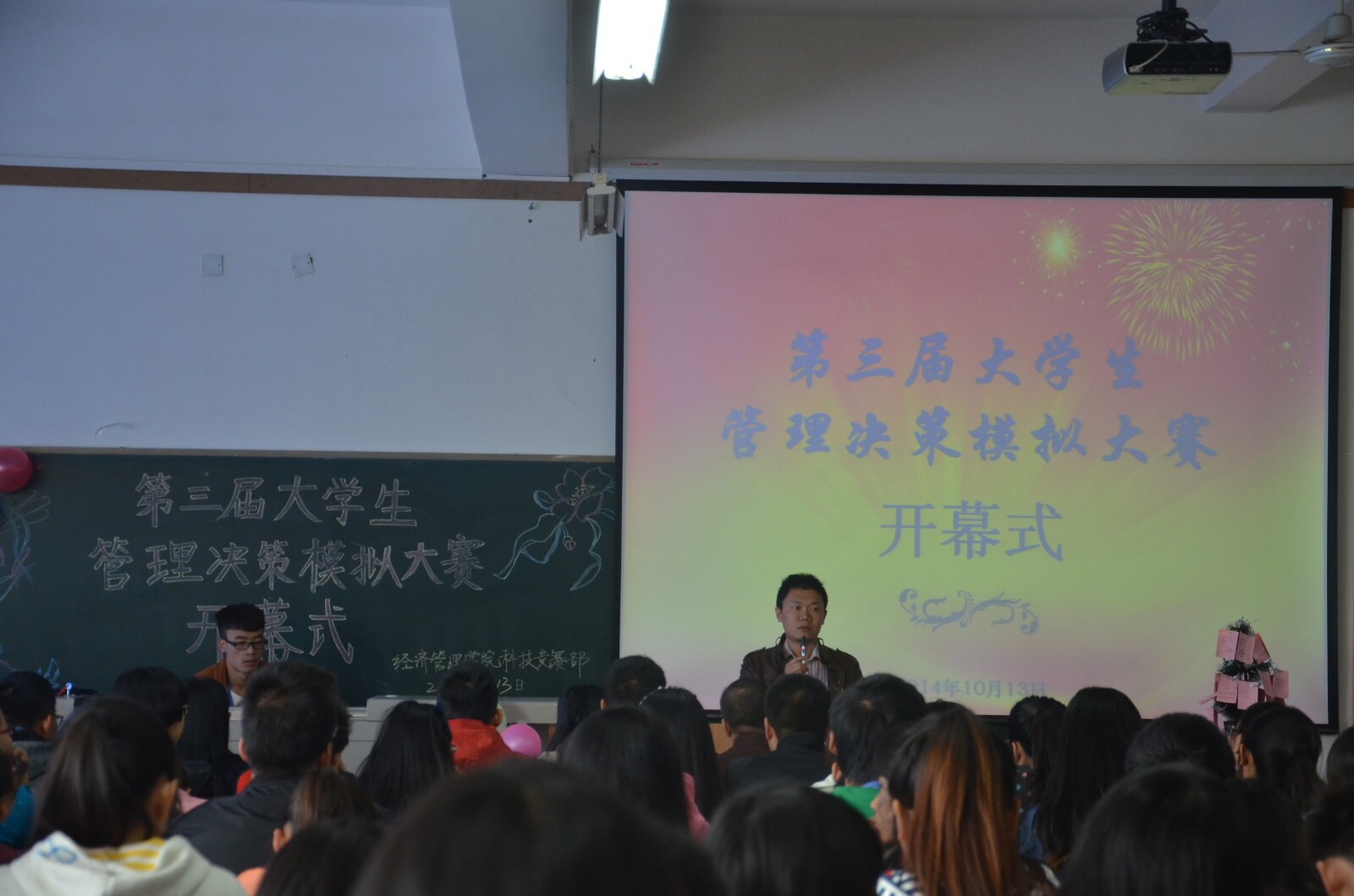 开幕式的举办标志着我校第三届大学生管理决策模拟大赛正式开始。大学生管理决策模拟大赛旨在提升大学生个人综合素质,锻炼团队的配合能力,拓宽大学生的视野,并让大学生将理论与实践相结合,做到学以致用,实现全面发展。
