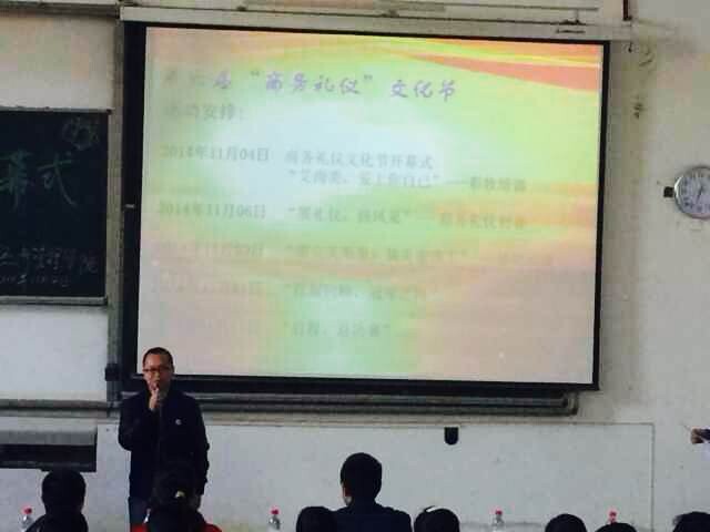 2014年11月4日中午,由经济管理学院主办的西安工业大学第六届商务礼仪大赛在教1-205教室顺利开幕。我院辅导员易亮、冯琳、冯川川出席了开幕式,200余名参赛同学参加了本次活动。