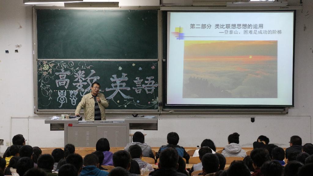 2014年11月19日晚,计算机科学与工程学院围绕社会主义核心价值观,邀请洪波书记为14级全体学生进行《高数·英语·人生》的讲座,同时参加讲座的还有14级辅导员王云霞和刘地格。