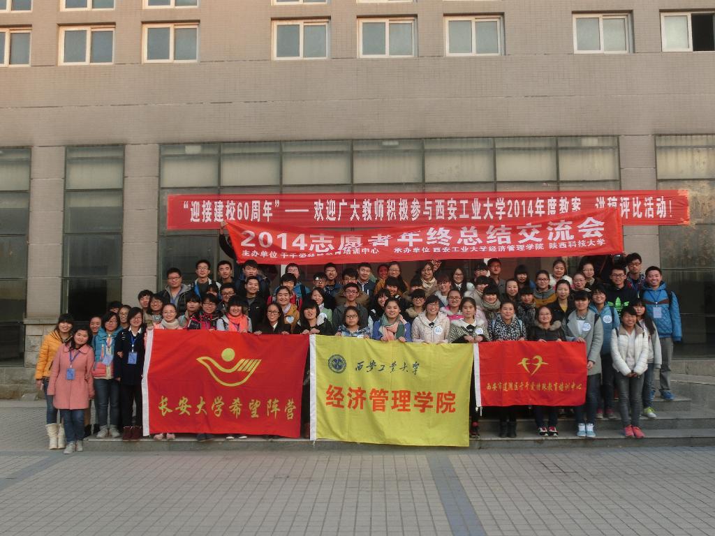 12月5日下午,由千千爱特殊教育培训中心主办,经管学院承办的以“爱——因奉献而精彩”为主题的2014志愿者年终总结交流会顺利举行。西安大学生志愿者联合会创办人贺琼、千千爱特殊教育培训中心负责人丁常玲和崔愿、经管学院辅导员冯川川出席,来自长安大学、陕西科技大学和西安工业大学经管学院的90余名志愿者参加了本次活动。