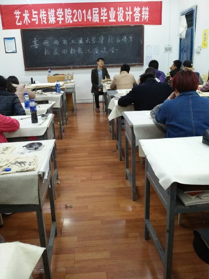 在我校60周年校庆来临之际,为更好地促进校友与在校学生之间的交流,艺术与传媒学院于4月2日举办了校友回校经验交流会。2010级书法专业优秀毕业生李灿民、油利华分别做了精彩的交流发言。2014级全体书法学学生参加了经验交流会。