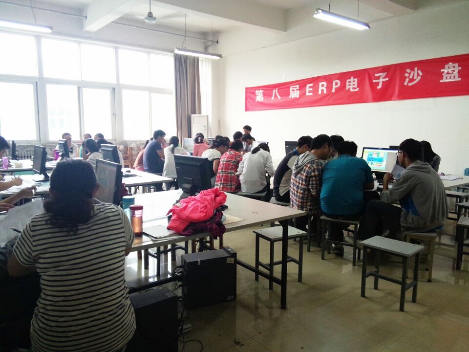 4月25日,由经济管理学院主办的第八届ERP电子沙盘模拟经营大赛初赛在教5—502拉开帷幕。我院各年级各专业学生积极组队参加。