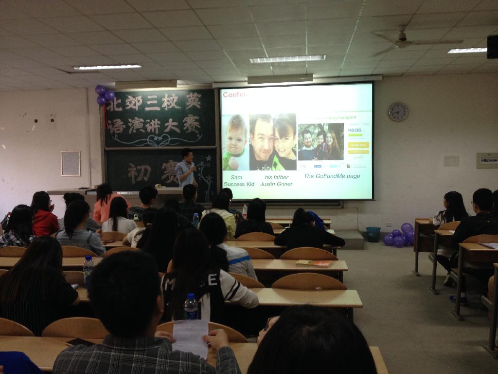 英语的发展日显其重要性。为提高学生英语水平及素养,促进北郊三校的友好校际关系,外国语学院于5月5日晚在教2-201举办了以“Believe in life”为主题的北郊三校英语演讲大赛初赛。此次比赛邀请了外国语学院车向前、董凯及张玥三位老师作评委。