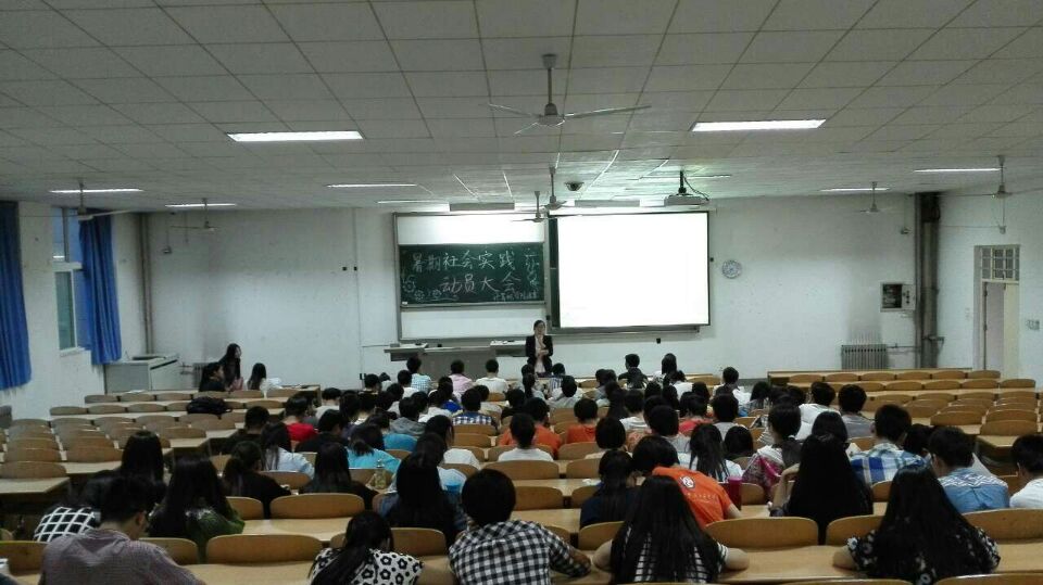 大会中实践部部长朱洁为大家详细介绍社会实践流程,展示了往年学校学院优秀实践团队视频资料,号召同学们在假期积极走向社会,在社会实践中磨练自己,提升自己,过一个充实的暑假。王老师希望同学们能远离手机,不做宅男宅女,积极热情,走向社会去迎接挑战,锻炼自己,培养团队协作意识,同时通过社会实践可以。接下来是高杨分享他们的听风者实践队的实践经验,最后由团委副书记那佳乐总结大会。
