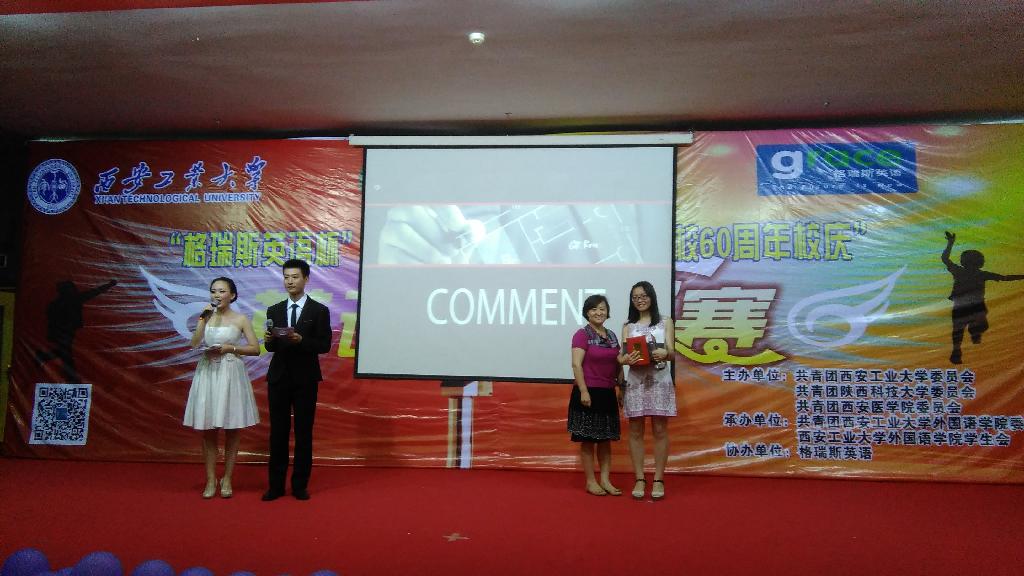 5月27日19点,由共青团西安工业大学委员会、共青团陕西科技大学委员会、共青团西安医学院委员会主办,西安工业大学外国语学院团委学生会承办的第七届北郊三校“献礼母校60周年校庆”英语演讲比赛决赛在西安工业大学图书馆报告厅隆重举行。