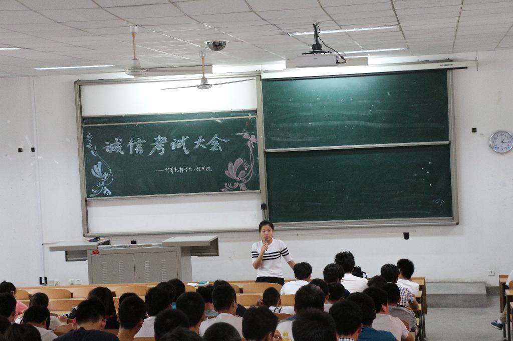 为了全面贯彻落实学校有关考试的纪律要求,树立优良的学风和校风,为广大同学营造一个公平的竞争环境,计算机学院于6月10日在教3-115开展“诚信考试”年级大会。大会由14级辅导员王云霞、刘地格主持,14级全体学生参加了本次会议。