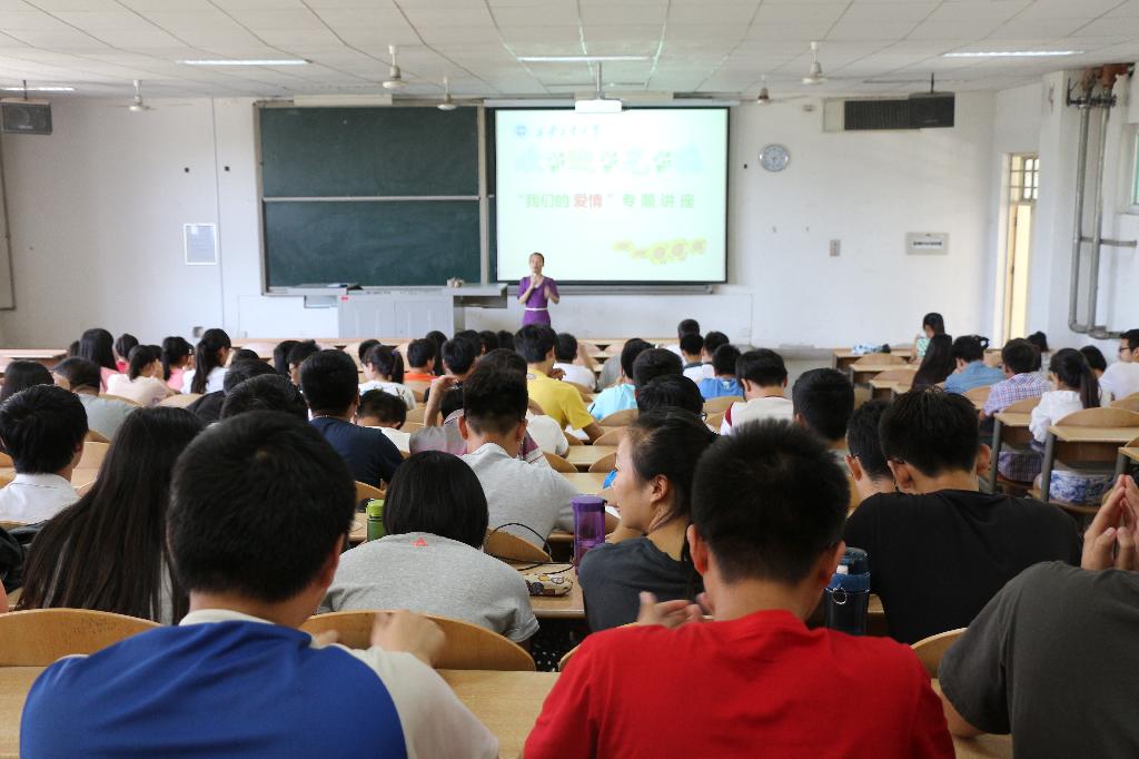 林老师通过讲解爱情的定义、特点和实质,进一步论述了恋爱时必须坚持的原则、立场和底线。反复告诫同学们要树立正确的恋爱观、婚姻观,恋爱过程中要相互尊重、相互理解、彼此鼓励、共同进步、健康成长。她向同学们详细介绍了选择恋爱对象时的三个需求层次——生理、心理、精神,较为深入地分析了每个人在选择对象时所逐步深入的心理动机。同时向同学们讲述了男女生对“性”问题的看法,随后又引用了“小许”和“娜娜”这两个遭遇相似却因为心态不同而产生不同结果的事例,告诉大家,在爱情里拥有积极心态的重要性,在老师讲解的过程中,同学们时而因有趣的话题而笑声连连,时而因事例中人物的不同遭遇而叹息,进而思考自己对爱情的态度。通过讲座,同学们一致认为,积极的爱情完全可以使校园学习、生活充满正能量。