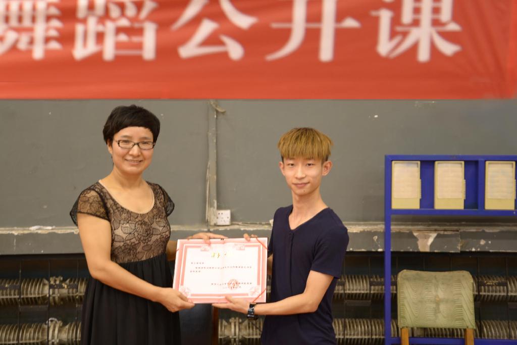 活动在激情洋溢的开场舞中拉开了序幕,首先,曹书记为活动致辞,她说:“大学生应该培养高尚的道德情操和积极乐观的生活态度,应该摒弃低级趣味,追求高雅生活情趣,舞蹈是人类艺术的结晶,我们希望通过此次舞蹈公开课,让同学们感受舞蹈艺术的魅力,走下网络、走出宿舍,通过舞蹈锻炼体格,培养健康心理,多交朋友。”其次,曹书记为徐士林老师颁发了聘书,聘请徐老师为学院艺术团指导老师。接着,舞蹈公开课正式开始,徐老师先和同学们进行了交流互动,按照同学们的强烈要求,徐老师为同学们表演了爵士、斗牛、恰恰等几个舞种,徐老师帅气华丽的舞姿赢得同学们的阵阵喝彩,现场气氛瞬间被推至高潮!最后,徐老师给同学们现场教授了一段起源于墨西哥的恰恰舞,在场的老师也跟着跳了起来,现场气氛热烈融洽,欢声笑语不断。
