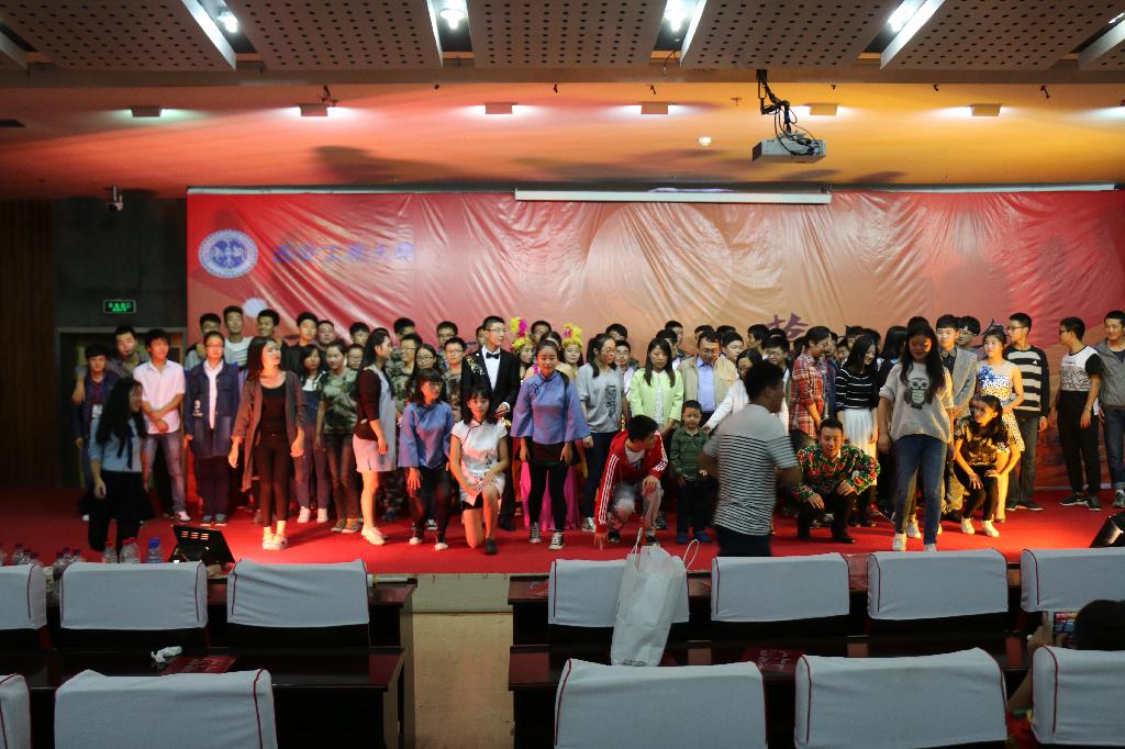 第一个登台的是五个帅气的新生表演的民谣串烧《南斑情》,其中包含了《南山南》《斑马,斑马》《情非得已》三首歌曲,让观众大饱耳福。节目中还有小品《兄弟别闹》,让观众们体会到了兄弟、朋友之间的情谊。随着15级辅导员呼延晓蓉老师的舞蹈《touble maker》的开始,台下发出了一阵阵的欢呼声,呼延老师优美的舞姿,把整个晚会推向了高潮。在反法西斯胜利70周年之际,大一的同学们表演了《救亡进行曲》,通过展示抗战时期的一些英雄人物、英勇事迹,再次唤起同学们对和平的珍视,对祖国的热爱。随后,在《中国军魂》的合唱中们迎新晚会完满结束。