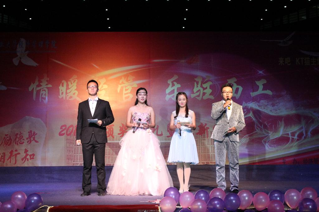 晚会在抒情唯美的舞蹈《落花情》中拉开帷幕,空灵的舞姿展示了经管女生特有的美丽和柔情。伴随着动感的音乐和柔美的灯光,《WHO AM I》通过“T台秀”展示了大学生的青春活力,特别是学院党政领导的给力加入,更是将整个节目推向高潮,真正让观众领略了学院领导的风采和魅力。此外,学院领导还对2015级学生做了寄语,表达了对2015级学生的无限期望和良好祝愿。