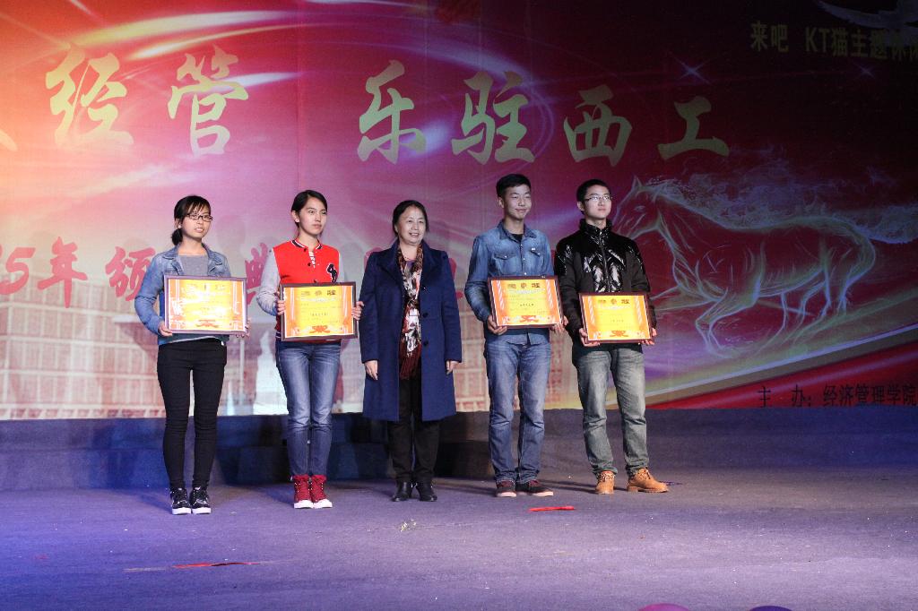 为迎接2015级新生的到来,展现我院学子风采,10月28日晚,经济管理学院“情暖经管,乐驻西工”颁奖典礼暨迎新晚会在经纬广场隆重举行,校学生处副处长杨正强,我院党委书记曲敏,院长李纯青,副院长苏兵、宋元梁,党委副书记程新峰,各年级辅导员以及校办、总务处、校团委领导和各学院团委书记等出席,我院2015级本科生、专升本、研究生共1000余人参加晚会。