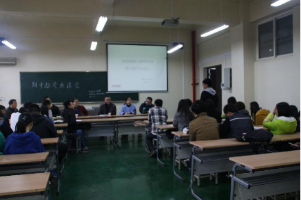 2015年11月10日中午12点30分,在工4-402举办了材料物理和材料化学期中教学座谈会,材料与化工学院副院长陈卫星、无机非金属材料教研室主任许岗、辅导员组长张瑞红、教研室教师魏永星、徐大鹏、王素敏、扈琳以及2014级辅导员陈远林出席本次座谈会,会议由张瑞红老师主持。