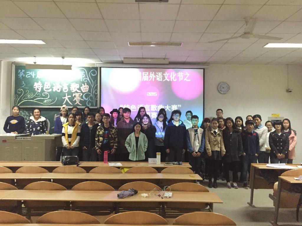 为了丰富校园文化生活,外国语学院于11月17日晚19:00在教2-210举办了第二十四届外语文化节之“特色语言”歌曲大赛初赛。本次比赛初赛的评委为外国语学院团委副书记刘婉君、学生会主席朱文璟、副主席阮忻妍和文宣部部长林娜。来自全校各学院27名选手进行了精彩地演唱。