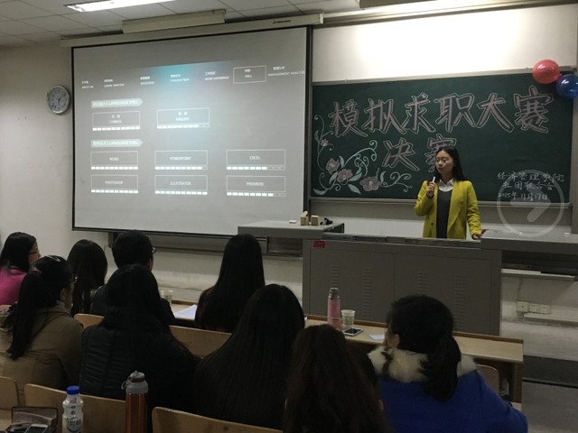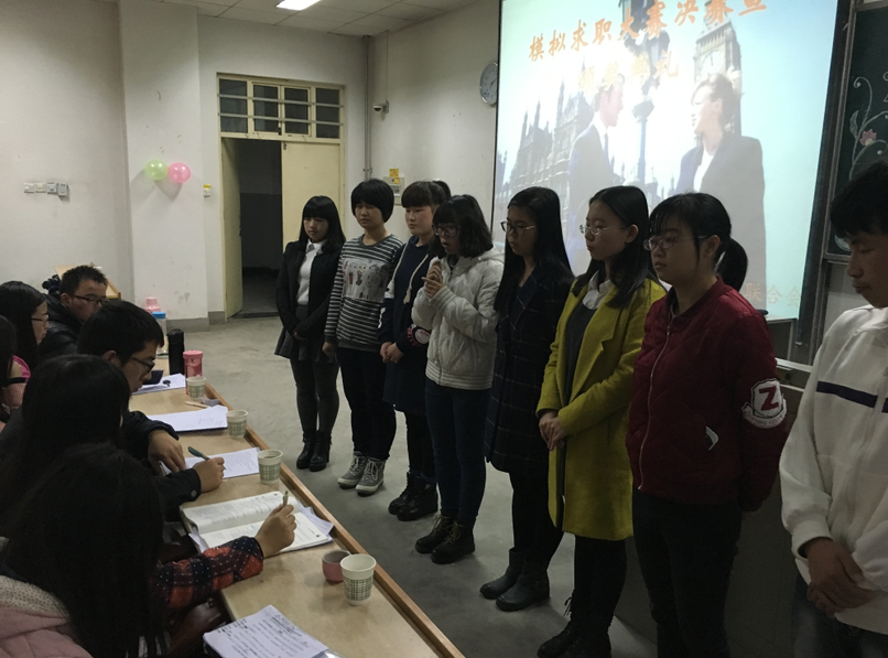 当今中国社会加速转型,竞争压力越来越大,大学生群体的就业形势异常严峻,为提高我院学生的求职能力,2015年11月17日,经济管理学院社团联合会在教2-311举办模拟求职大赛决赛。出席本次大赛的有社联负责老师刘雷波、大四学姐鲁丹妮、社联主席潘旭、副主席王雷。