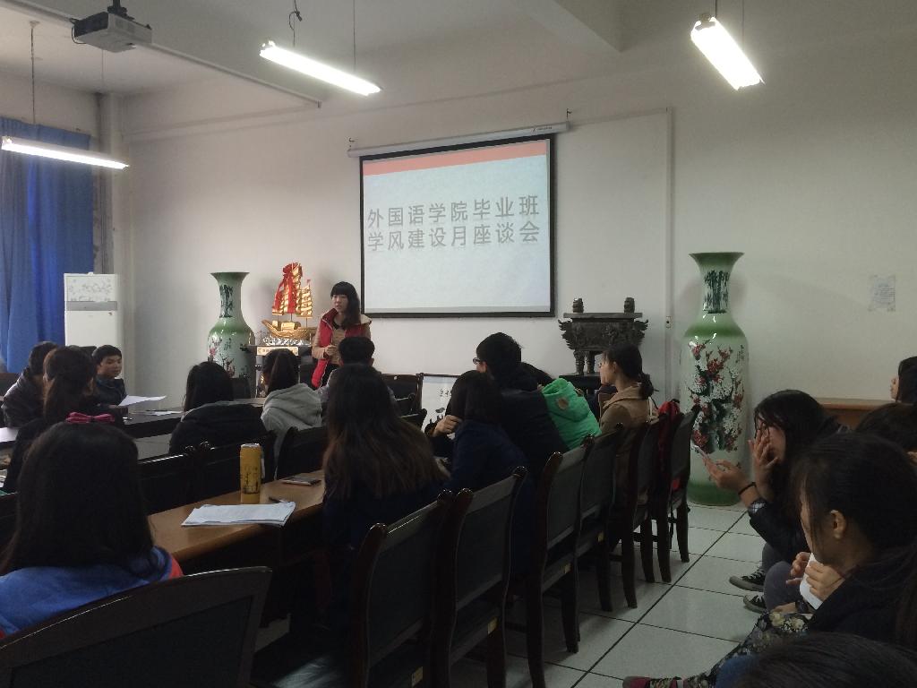 11月13日上午10:30,我院在教5-413召开毕业生就业指导服务暨学风建设月座谈会。会议由毕业班辅导员范亚苗主持。2012级全体毕业生参加会议。本次大会针对我院毕业生面对就业时所遇到的困惑和问题进行了指导和解答,并对毕业班课堂纪律及技能学分相关事宜做了强调要求。