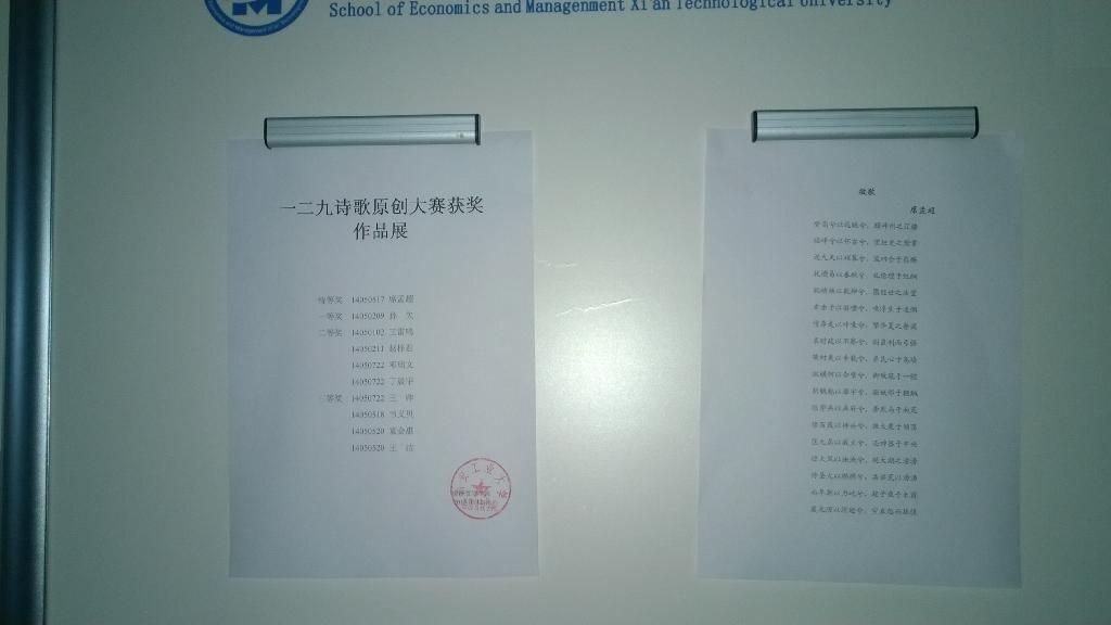 典礼伊始,张老师首先向各投稿同学表达谢意,并宣布了获奖结果。本次大赛经过三次层层严格评审最终确定,特等奖一名,一等奖一名,二等奖和三等奖数名。接下来,由刘老师为各获奖同学颁奖,并与其合影留念。随后,刘老师对此次大赛作了总结性的发言。他指出,本次大赛,同学们热情积极,作品质量高,水平高,形式多样,内容丰富,是一次成功的比赛。最后,张老师再次激励大家要以实际行动传承这份爱国热情。学院对本次所有获奖的作品予以公开展出,供广大师生欣赏和学习。
