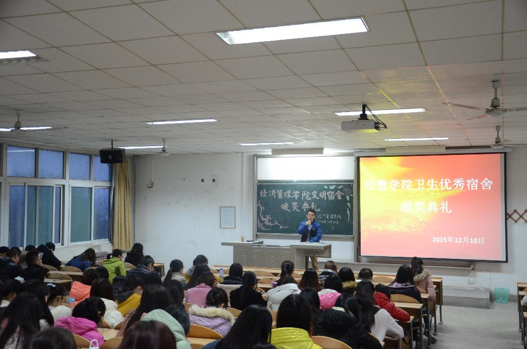 为表彰卫生优秀宿舍,鼓励14级学生学习先进,追求卓越。12月10日下午,我院在教2—202教室举行了“卫生优秀宿舍颁奖典礼”。参加本次活动的有14级辅导员刘雷波老师、所有班级生活委员和宿舍长。