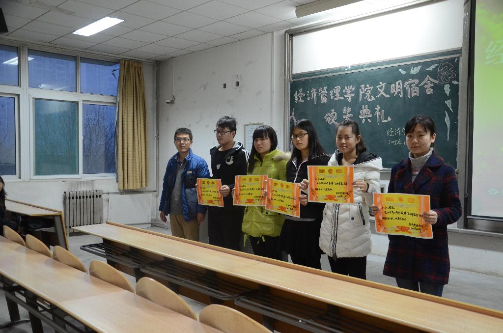 下午五点半,颁奖典礼准时开始。活动伊始,刘老师宣布了此次获奖的宿舍名单,并为5位获得文明宿舍称号的宿舍颁奖,现场响起了热烈的掌声。随后,刘老师对本次活动进行总结,肯定了大家的成绩,并希望大家戒骄戒躁,保持良好的宿舍卫生习惯。接下来,刘老师重点强调了冬季宿舍安全问题。要求全员提高安全意识,从我做起,从身边做起,杜绝安全隐患,尤其是宿舍内严禁使用违规电器,要把安全警钟长鸣。最后,刘老师提醒各位同学,临近期末,要合理安排复习时间,不要在考场上犯一些常识性的错误。