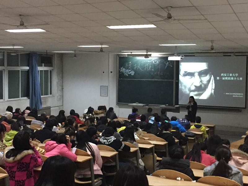 经过悉心准备,模拟推介大赛在晚上七点正式开始。活动伊始,十组选手依次登台对自己的产品进行推介,选手们推介的产品各具特色,推介方式也各有风采,更有选手使用纯英文进行推介,引人注目。随后,三位嘉宾对本次大赛进行总结,对大赛的举办形式提出建设性建议,对选手的表现进行点评。活动最后,由主持人宣读比赛结果,由三位嘉宾为获奖选手进行颁奖。