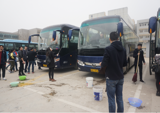 学生会的志愿者们准时到停车场,大家分工合作,有的打扫车里卫生,有的擦车外面,每一位志愿者都热情积极的行动起来,经过1个多小时的清洁5辆校车焕然一新。活动受到了车队师傅的高度赞扬。