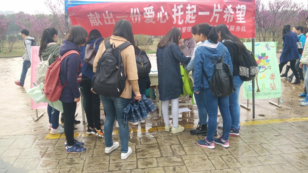 为弘扬雷锋精神,为贫困地区的孩子们募捐衣物和书籍等物品,3月24-25日,经管学院在经纬广场开展了以“献出一份爱心,托起一片希望”为主题的校内募捐志愿活动。