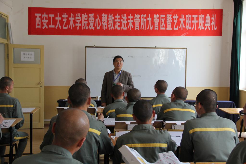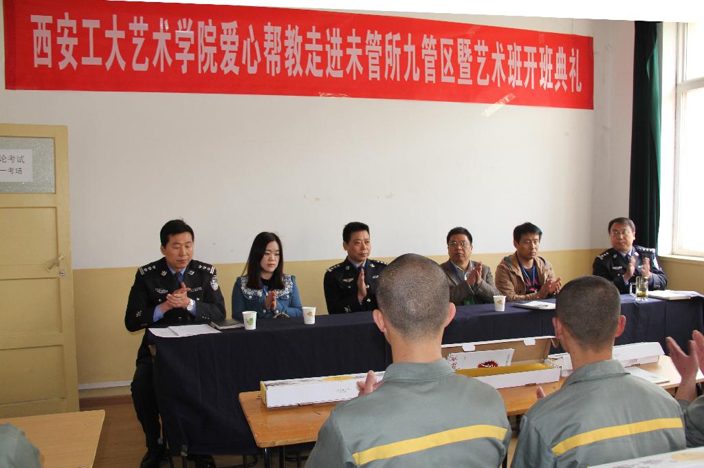 4月1日,西安工业大学艺术与传媒学院爱心帮教走进未管所九管区暨艺术班开班典礼在未管所九管区会议室举行,出席本次活动的有陕西省未成年犯管教所副所长张力光、教育科科长杨鹏、九管区管区长娄刚,艺术学院工业设计系主任任娟莉、美术学系教授傅如明、辅导员组长张晓宾及学生志愿者孔令通、邵子枫,本次活动由陕西省未成年犯管教所九管区教导员梁茹主持。