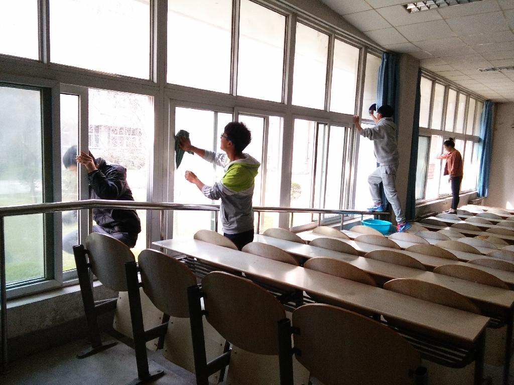 阳光明媚,春风微凉,2016年3月19日,机电工程学院“阳光青协”在教二楼开展了清除“课桌文化”活动,本次活动的主旨是为同学们创造良好的学习环境。机电工程学院“阳光青协”的干事以及我院六十多名获得国家助学金的同学参加了本次活动。