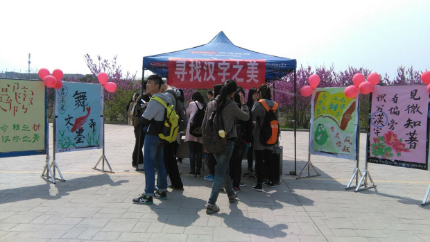 网络化的今天,“提笔忘字”的现象越来越严重。为此,努力弘扬汉字文化很有必要。同时为丰富校园文化生活,弘扬爱国主义精神,全面推动素质教育的深入发展,活跃校园文化,提高我校学生综合素质,材料与化工学院学生会举办的第一届“寻汉字之美”主题活动于2016年3月30日在经纬广场正式开幕。