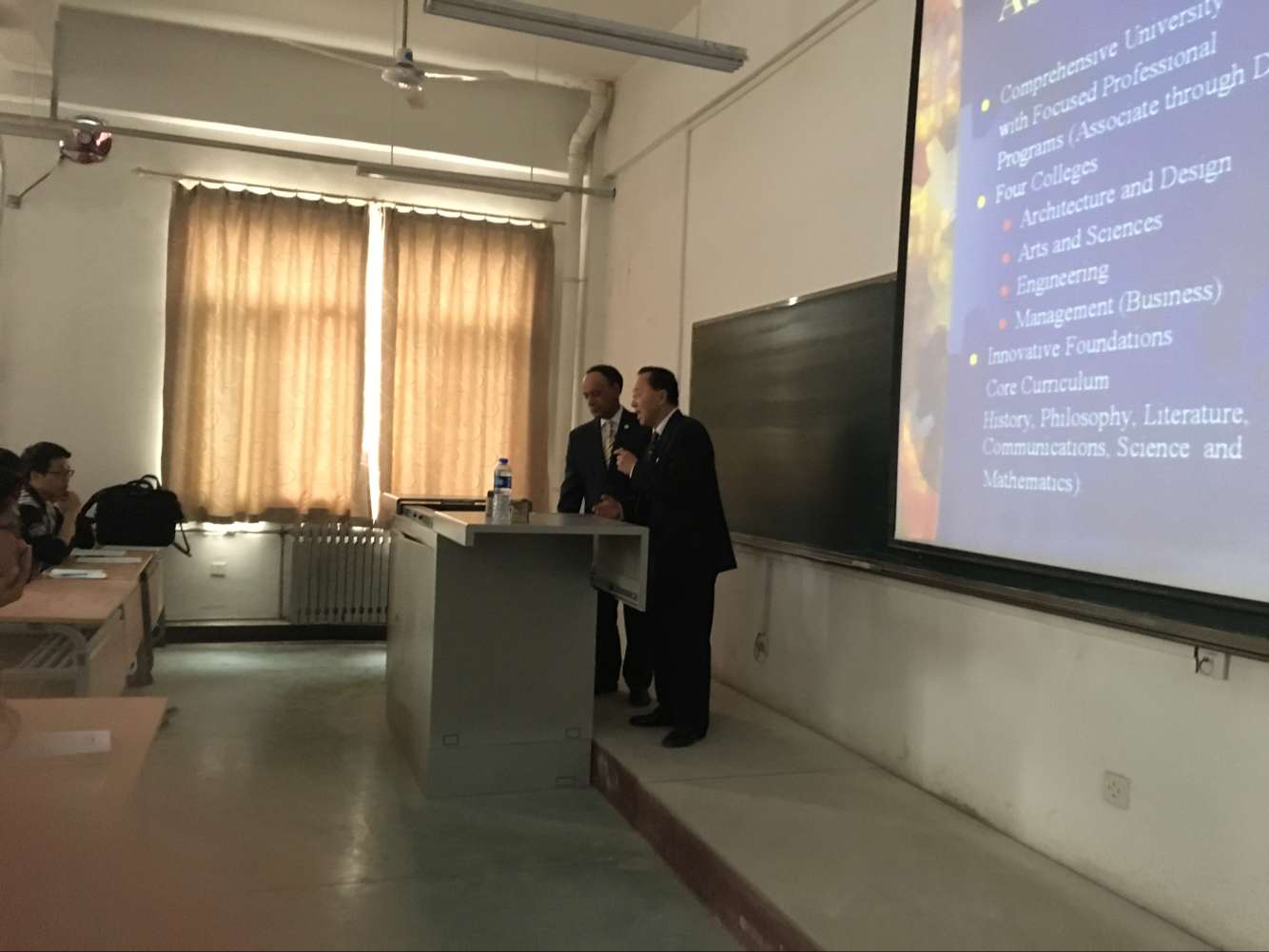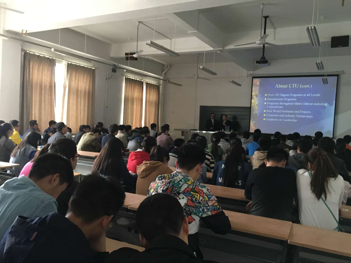 2016年4月8日,美国劳伦斯技术大学(Lawrence Technological University)校长卫瑞迪尔•克•莫迪戈博士(Dr. Virinder K. Moudgi)等一行三人来我校进行友好访问,并在工2-504与机电工程学院学生进行了亲切交流。