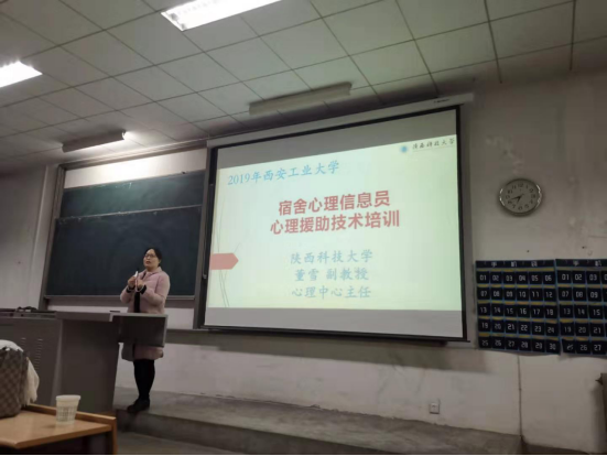 2019年11月24日晚6点30分,机电工程学院在教1-101开展2019级班级宿舍心理信息员培训。此次培训的主讲人为陕西科技大学大学生心理中心主任董雪,出席本次培训的人员有学院党委副书记姚敏茹,学院心育员高珊以及2019级全体宿舍信息员。