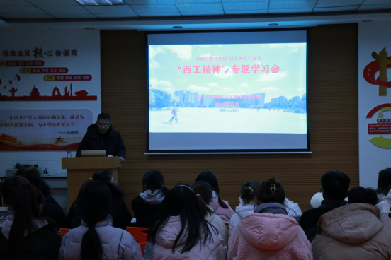 会上,张晓宾带领大家全文领学了校党委书记刘卫国在中国教育报上的署名文章《忠诚进取铸辉煌 精工博艺育英才》,并向大家讲述西安工业大学建校史,强调“忠诚进取铸辉煌、精工博艺育英才”的“西工精神”在一代代西安工大人的接续奋斗中薪火相传,希望大家不断学习知识,增进个人技能,争做“西工精神”的明信片。