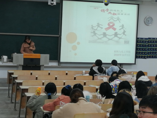 为增强学生防控艾滋病意识,提升学生抗击疫情的能力,材料与化工学院于2020年12月1日上午在教2-303召开“携手防艾抗疫,共担健康责任”主题宣讲会,本次会议由2018级辅导员张瑞红老师主持。