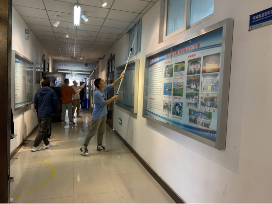 实验室负责老师向同志们简要的介绍了504实验室的基本状况,以及打扫该实验室的注意事项。在支部副书记王聪聪的协调下,对支部党员进行分组,根据各自的任务领取不同的卫生工具。各小组擦洗仪器设备,扫除垃圾,擦拭玻璃。不怕脏不怕累,合理分工,积极完成各自任务,实验室恢复了干净整洁。