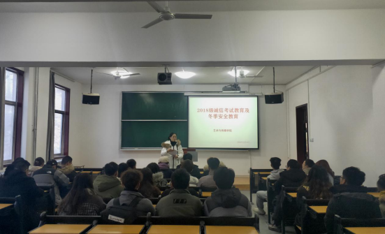 按照学校相关工作要求,为了营造公平、诚信的考试环境,端正每一名学生的诚信考试意识,提高全体学生健康安全防控意识。我院2018级于12月14日开展了诚信考试教育以及冬季安全教育的学习 。