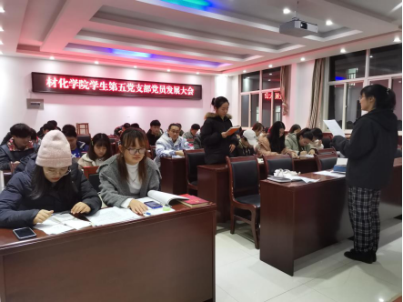 2020年12月1日至3日,材化学院学生第五党支部于工3-404会议室召开党员发展大会,就党员发展进行审议并履行程序,本次发展对象是侯凯旋等9名同志。党支部书记乔娜、全体学生党员和发展对象出席本次会议,会议由支部副书记张思雨同志主持。