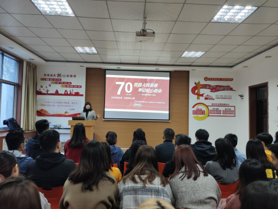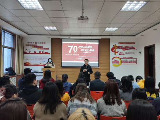 会议伊始,支部书记杨娜娜老师带领大家集体学习习近平总书记在纪念抗美援朝70周年大会上的讲话,抗美援朝展现了中国人民的精气神,展示了中国人民万众一心的顽强品格。接下来逯芝荷,冯兴旺,曹铧予,惠通,赵永杰等几位党员同志分享了对自己感触较深的抗美援朝英雄故事以及自己对抗美援朝精神的感悟和理解,引起了在场党员同志的共鸣。最后,杨老师对此次党日活动进行总结,希望党员同志们发扬英雄先烈的革命大无畏精神,提高自己的政治敏锐度和学习能力,充分发挥党员的模范带头作用。