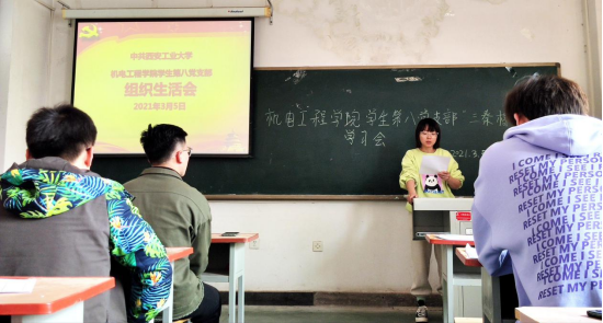 为了加强党支部成员的凝聚力和创新力,营造团结和谐的环境和氛围,不断提升思想政治素养,品德素质,真正使每一位进一步总结学习,提高水平,发挥党员的先锋带头作用。机电工程学院学生第八党支部于2021年3月5日中午召开了组织生活会会议。