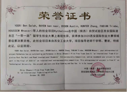 3月10日,以曹岩教授先进制造技术团队孕育和指导的《Rythmmino》留学生创新创业项目获得2020年度西安国际创新创业大赛决赛资格并获得投资意向。