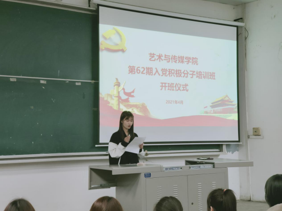 2020年4月1日在4F-219教室,艺术与传媒学院第62期入党积极分子培训班开班式如期举行。学院党委委员张晓宾出席,第62期入党积极分子全体学员参加开班式。