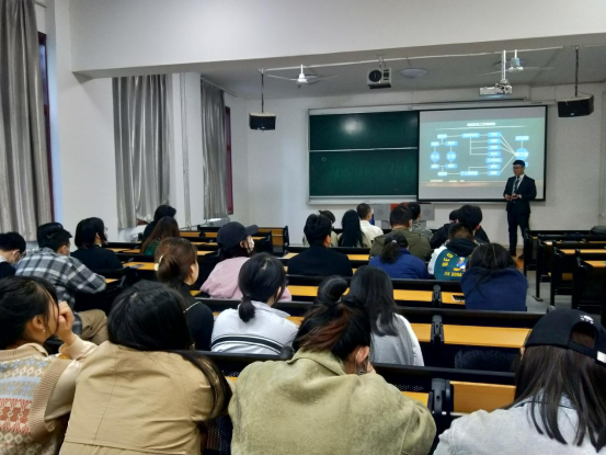 最后,在该平台工作的学长窦斌为大家介绍了自己毕业以来的发展情况,并描述了如今的社会现状,给予了学弟学妹们一些求职工作的建议。杨娜娜老师和黄怡梅老师鼓励同学们积极投递简历参与面试。