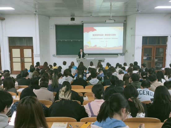 首先,杨娜娜老师以“重温青年运动,赓续奋斗精神”为主题,与大家一起重温100年前的岁月。从新民主主义革命时期、社会主义建设时期、改革开放新时期、新时代新青年四个方面进行学习。着重对五四运动的背景、发展经过、历史意义、现实内涵作了生动讲解,要求广大团员及全体学生大力弘扬“五四精神”,在党的坚强领导下,勇作走在时代前列的奋进者、开拓者、奉献者,以执着的信念、优良的品德、丰富的知识、过硬的本领,担负起青年学生应担的历史重任,让“爱国、进步、民主、科学”的“五四精神”放射出更加夺目的时代光芒。并号召大学继续坚持新时代中国青年运动的正确方向,奋力谱写实现中华民族伟大复兴中国梦的壮丽篇章,让青春在党和人民最需要的地方绽放绚丽之花。